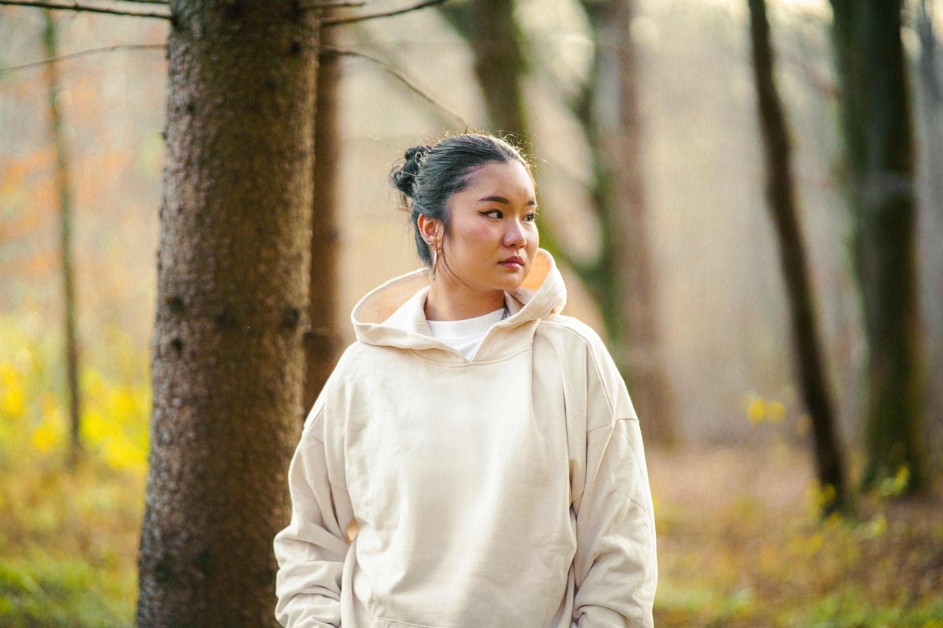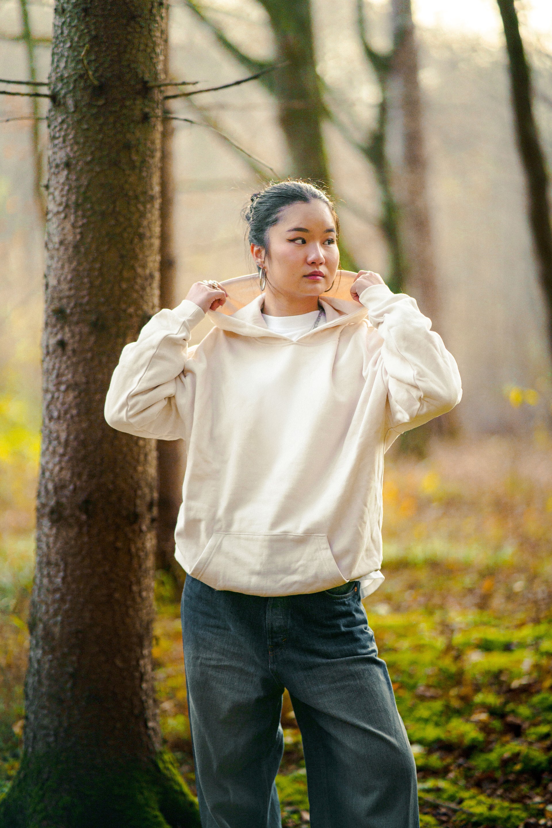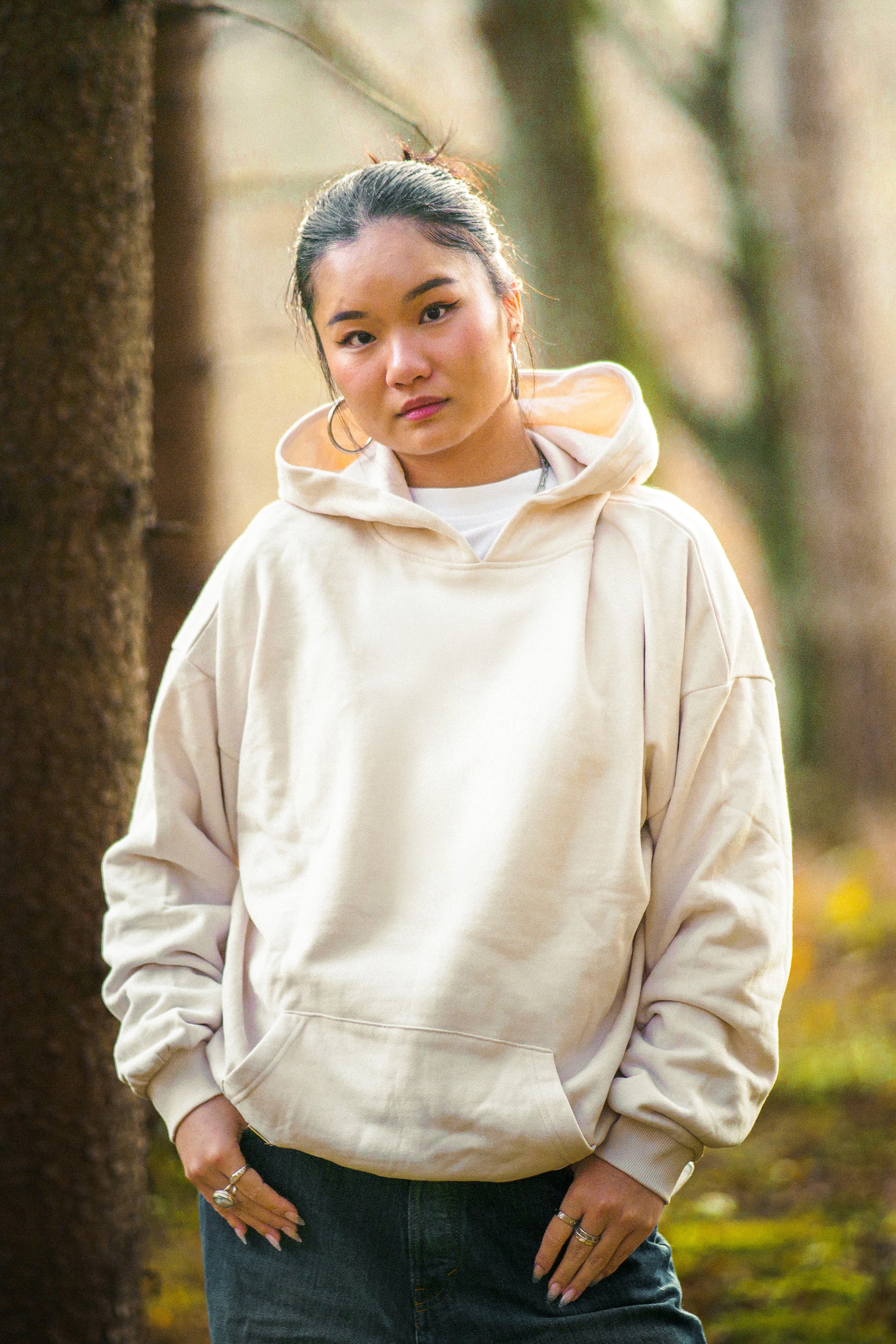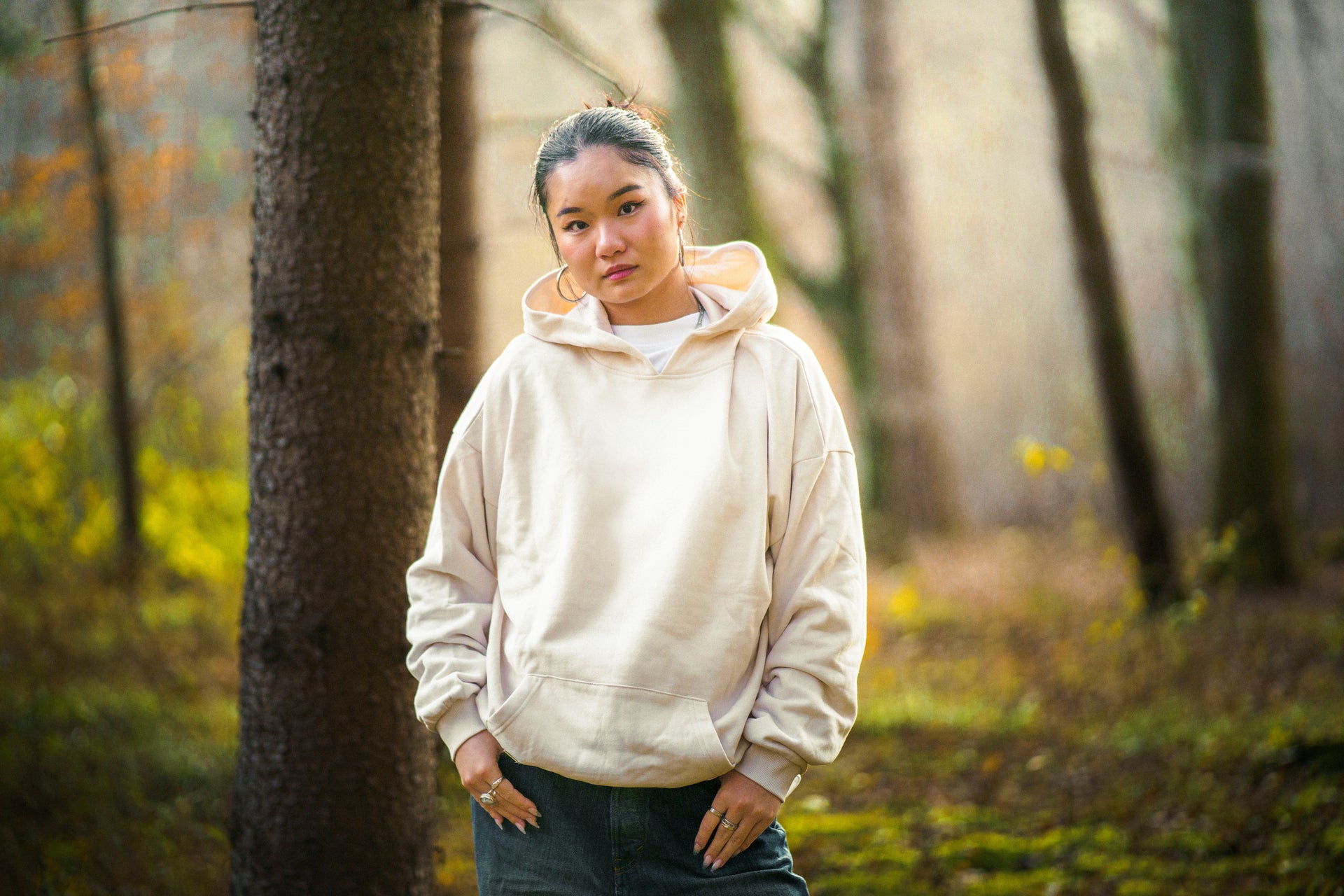 Die Hoodies haben alle einen Oversize Look. Bestell also am besten einfach deine reguläre Größe für den perfekten Oversize-Fit.